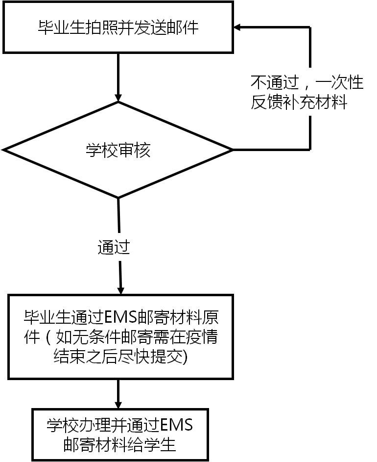 通过EMS将提交材料的原件邮寄至学校。(如无条件邮寄需在疫情结束之后尽快提交。) |