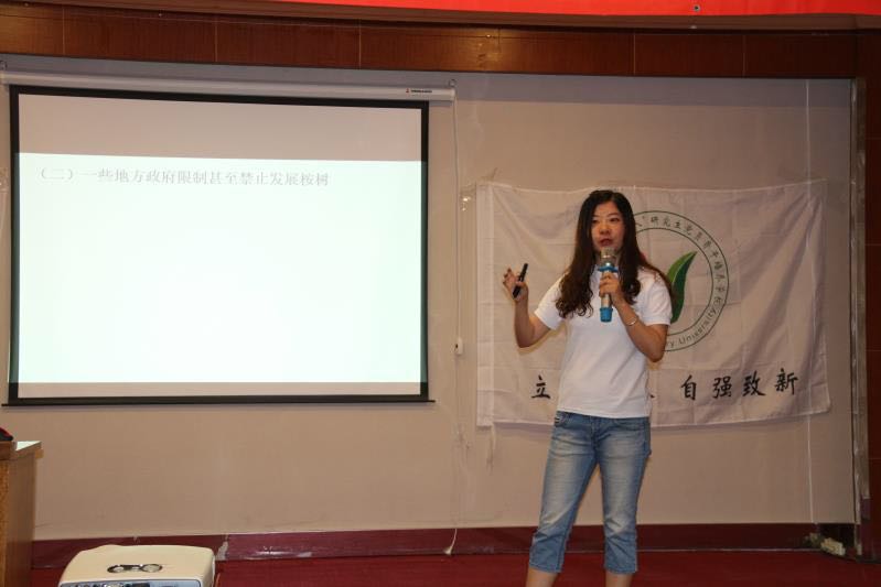 在本次宣讲过程中,才琪博士结合所学知识,就桉树发展带来的优势及目前存在的问题为大家讲解。讲课过程中,她首先以一些实地拍摄的图片及真实案例向同学们展示了桉树发展存在的问题,由此引出了此次宣讲的主题,引起了同学们的的极大兴趣。