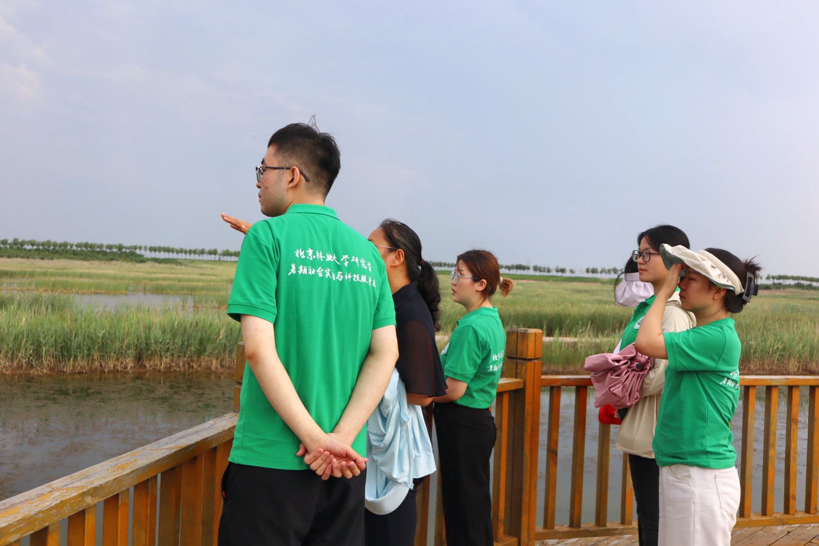 7月10日,我校 2023 年研究生暑期社会实践及科技服务山东东营分团在当地开展实地调研。实践团在东营市湿地保护中心湿地和林草规划发展科朱岩芳老师的带领下,前往东营市龙居生态林场和沿黄生态长廊等生态建设工程,了解龙居生态林场建设模式,沿黄生态长廊建设情况、林木成活及保存情况。