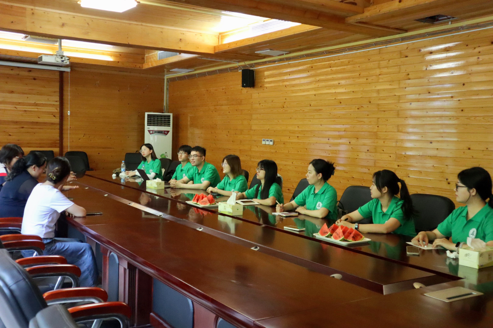 调研结束后,实践团召开调研会议,成员们对今天的所见所闻进行了分享,结合专业特色对重点内容进行了讨论,并表示将牢记“黄河流碧水,赤地变青山”的铮铮誓言,为黄河流域生态保护与高质量发展贡献力量。
